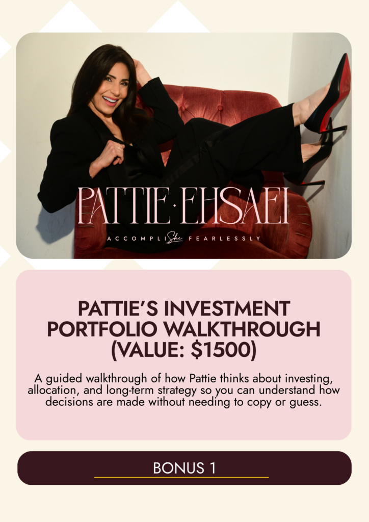 A guided walkthrough of how Pattie thinks about investing, allocation, and long-term strategy so you can understand how decisions are made without needing to copy or guess.